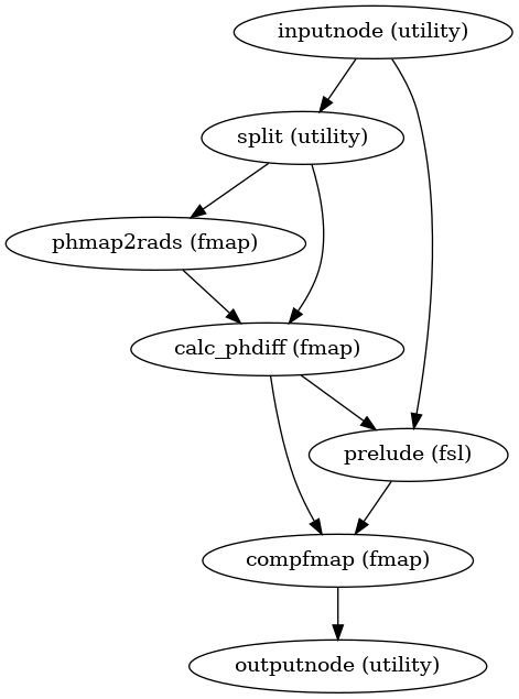 phase1/phase2be provided at the input), and generates an image equivalent to BIDS’sfieldmapthat can be processed with the general fieldmap workflow.Besides phase2 - phase1 subtraction, the core of this particular workflow relies in the phase-unwrapping with FSL PRELUDE [Jenkinson2003]. FSL PRELUDE takes wrapped maps in the range 0 to 6.28, as per the user guide.